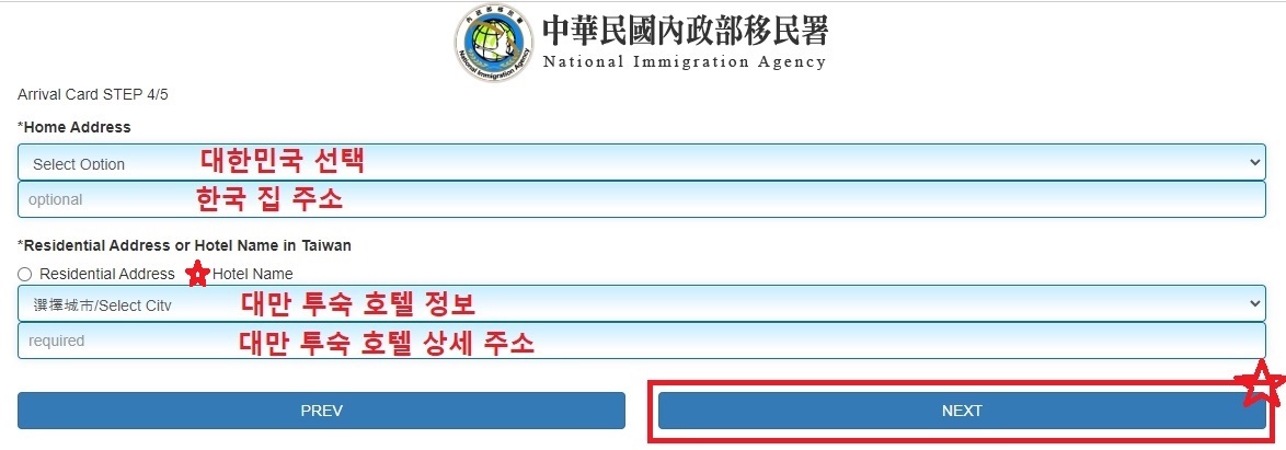 - Intended departure Date : 대만 출국일을 년/월/일 순서로 선택