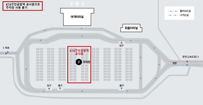 KTX 무안공항역 신설 공사 중으로 주차가 불가하오니 참고하시기 바랍니다.