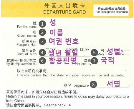 여행이든 출장이든 다른 나라를 방문하게 되면 출입국 신고서 작성은 필수입니다. 하지만 해당하는 나라의 언어를 알고 있으는 분들이나 혹은 영어를 잘하시는 분들은 쉽게 작성 가능하지만 언어를 잘 모르시는 분들은 출입국 신고서 또한 쉽게 작성하기 어렵기 때문에 오늘은 간단한 중국 출입국 신고서 작성법에 대해서 알려드리겠습니다.